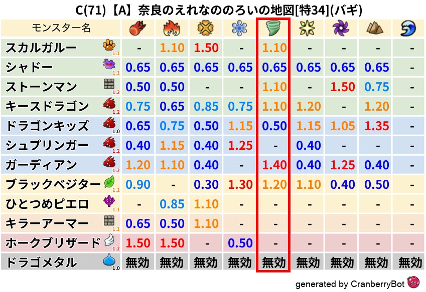 • 最高系統出現率:一番出現率の高いモンスターの系統、こころドロップ率アップの参考に!
