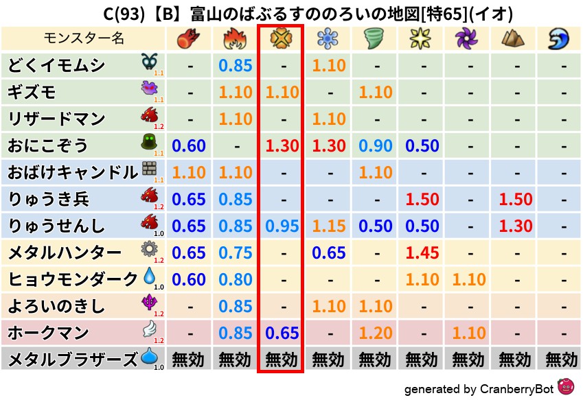 • 心珠P効率:各モンスターの出現率×Dランクの心珠P