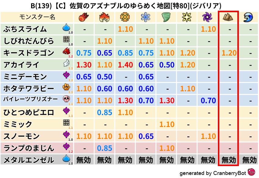ジバリア(0%) - 超耐性・弱耐性なし
