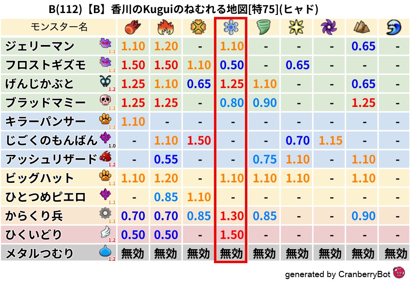• クランベリー置換率:大量発生モンスター別の順位、最高置換率の地図は人気が高い