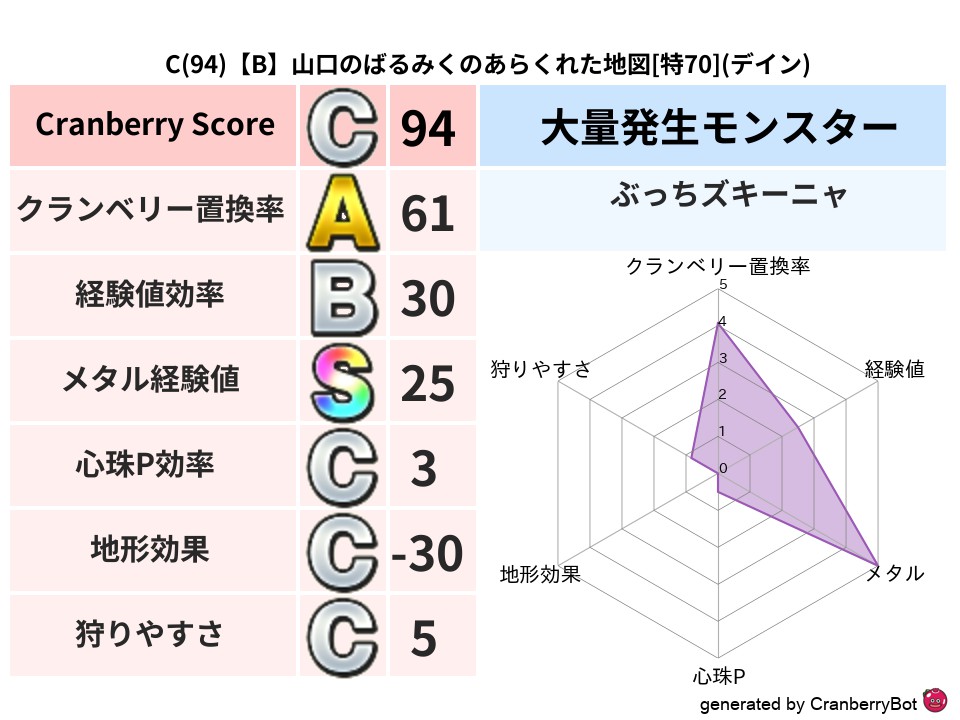 - クランベリースコア:129