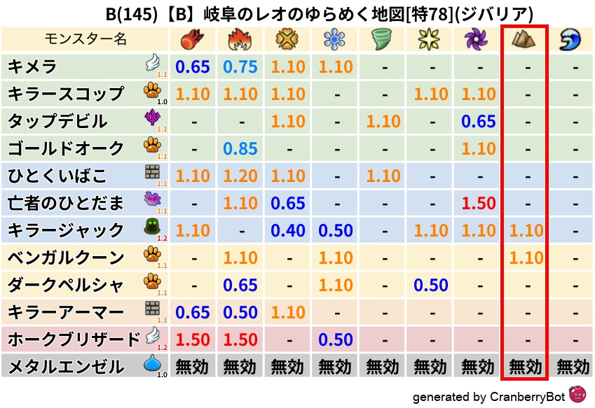 ジバリア(0%) - 超耐性・弱耐性なし