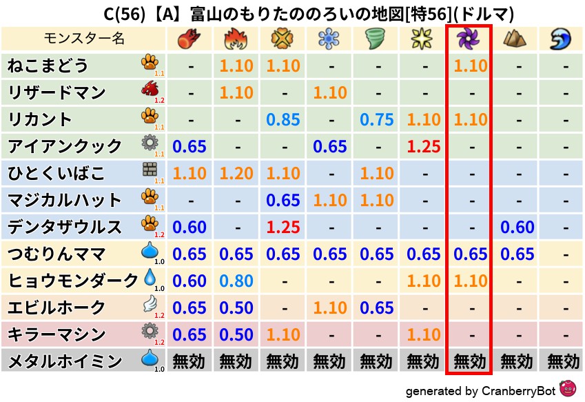• 最高系統出現率:一番出現率の高いモンスターの系統、こころドロップ率アップの参考に!