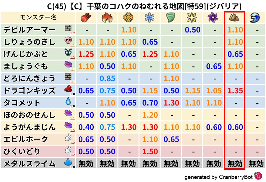 • 最高系統出現率:一番出現率の高いモンスターの系統、こころドロップ率アップの参考に!