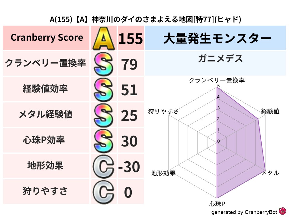 • クランベリースコア:これまで判定した地図での順位、上位100位はかなりレア✨