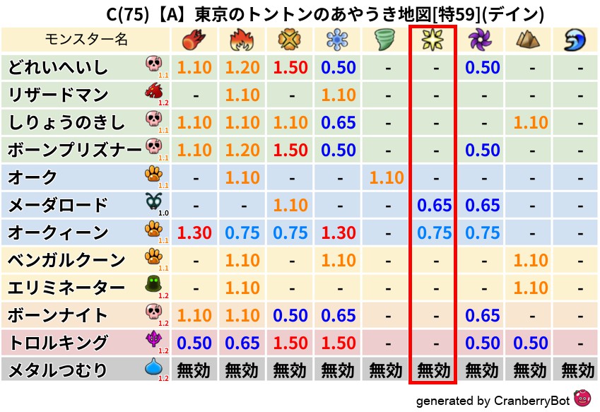 デイン(53%) - 超耐性・弱耐性なし