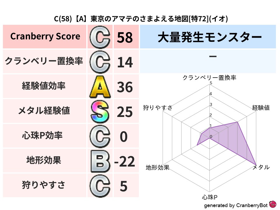 • クランベリースコア:これまで判定した地図での順位、上位100位はかなりレア✨