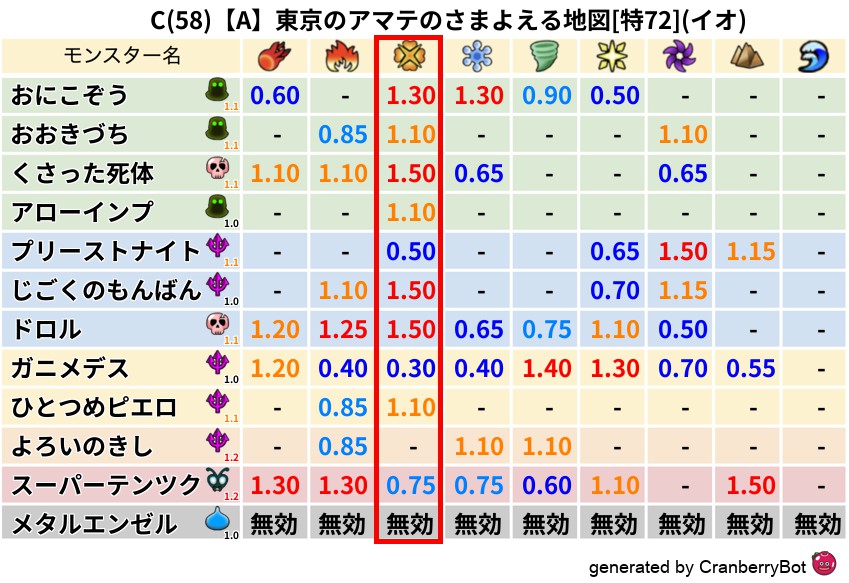• クランベリー置換率:大量発生モンスター別の順位、最高置換率の地図は人気が高い
