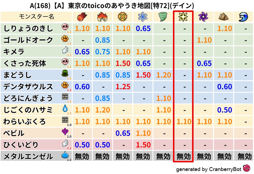 デイン(0%) - 超耐性・弱耐性なし