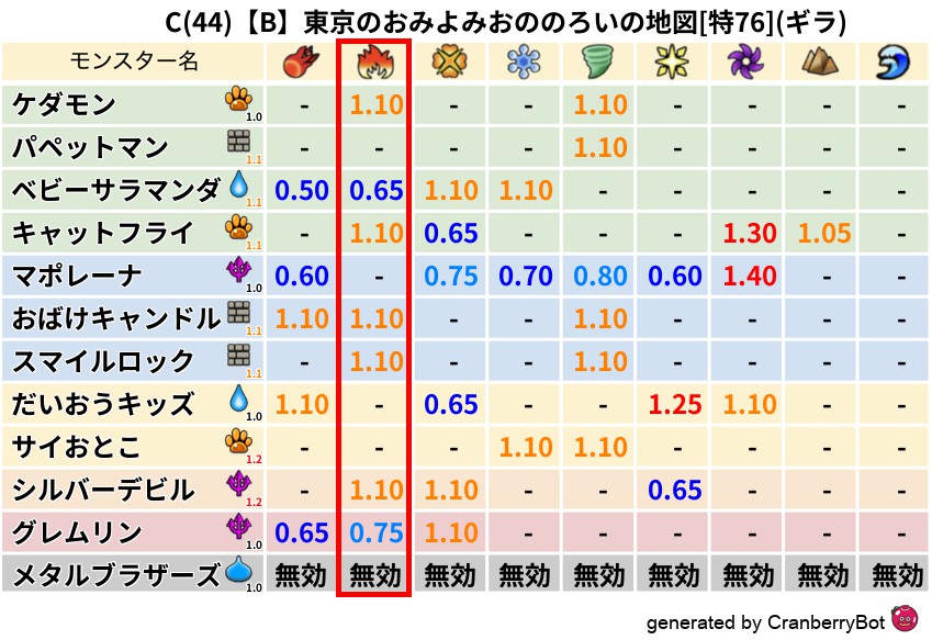 ギラ(50%) - 超耐性・弱耐性なし