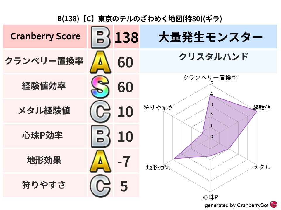 • クランベリースコア:これまで判定した地図での順位、上位100位はかなりレア✨