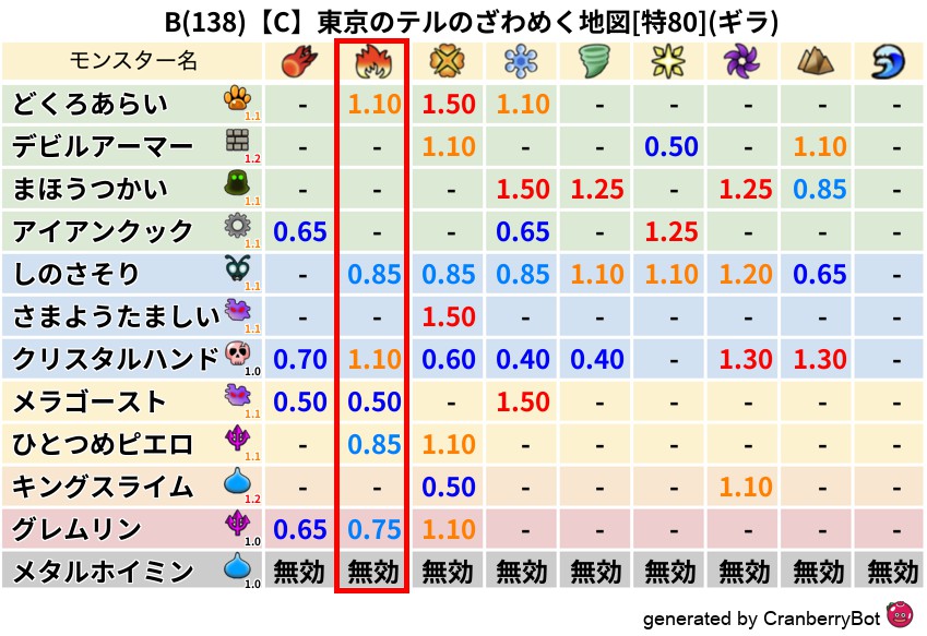• クランベリー置換率:大量発生モンスター別の順位、最高置換率の地図は人気が高い