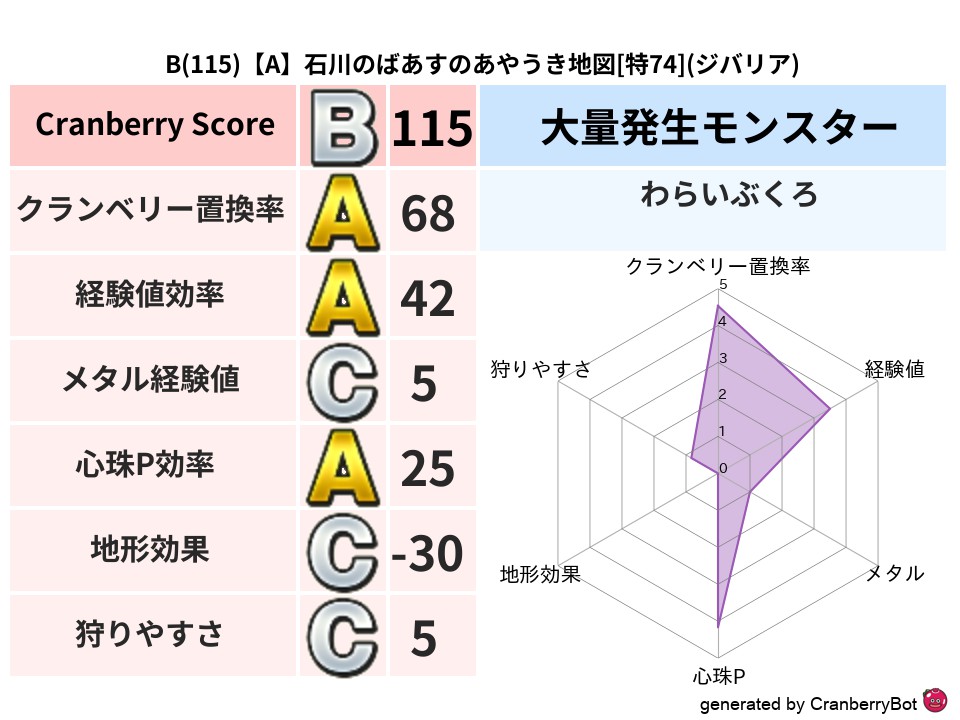 - クランベリースコア:130