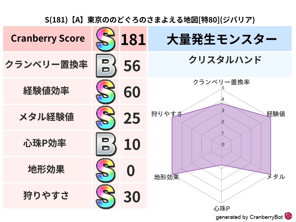 • クランベリースコア:これまで判定した地図での順位、上位100位はかなりレア✨