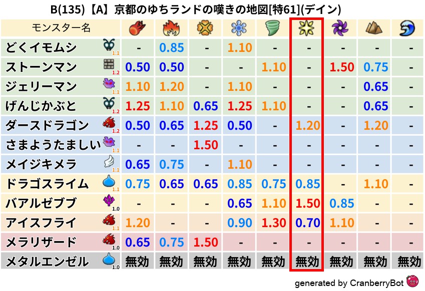 • 最高系統出現率:一番出現率の高いモンスターの系統、こころドロップ率アップの参考に!