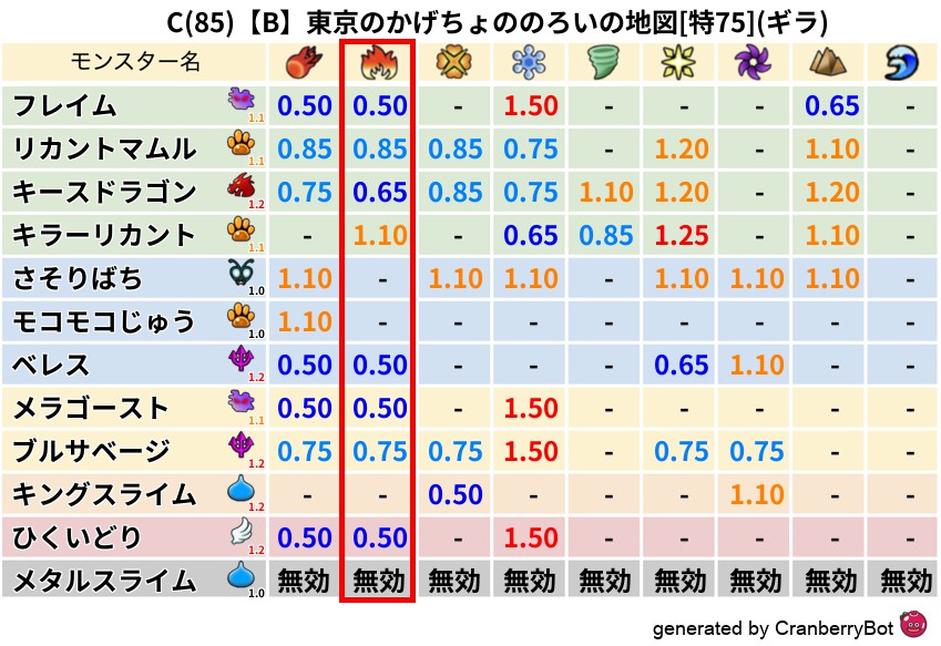 • 最高系統出現率:一番出現率の高いモンスターの系統、こころドロップ率アップの参考に!