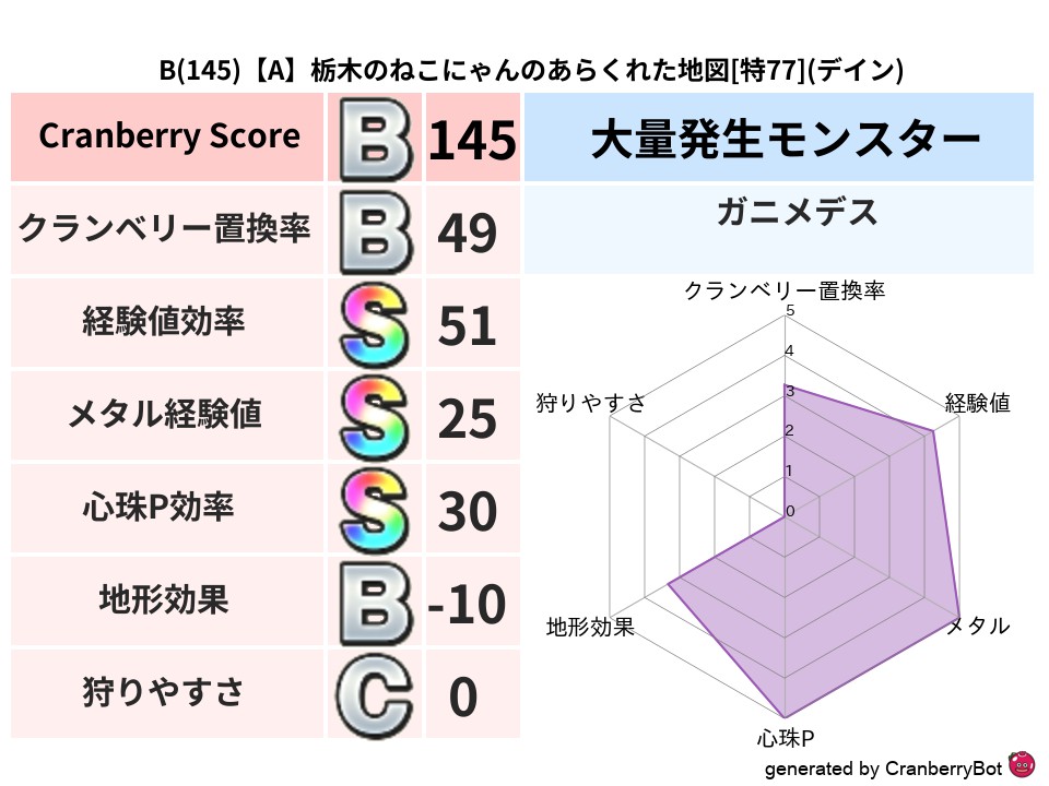 • クランベリースコア:これまで判定した地図での順位、上位100位はかなりレア✨