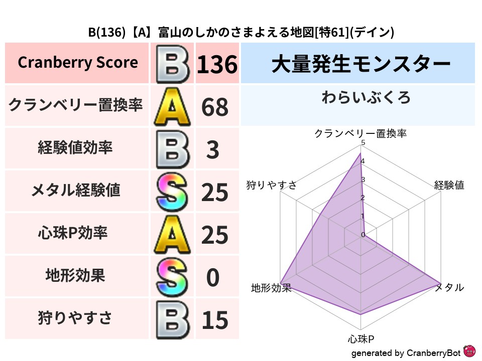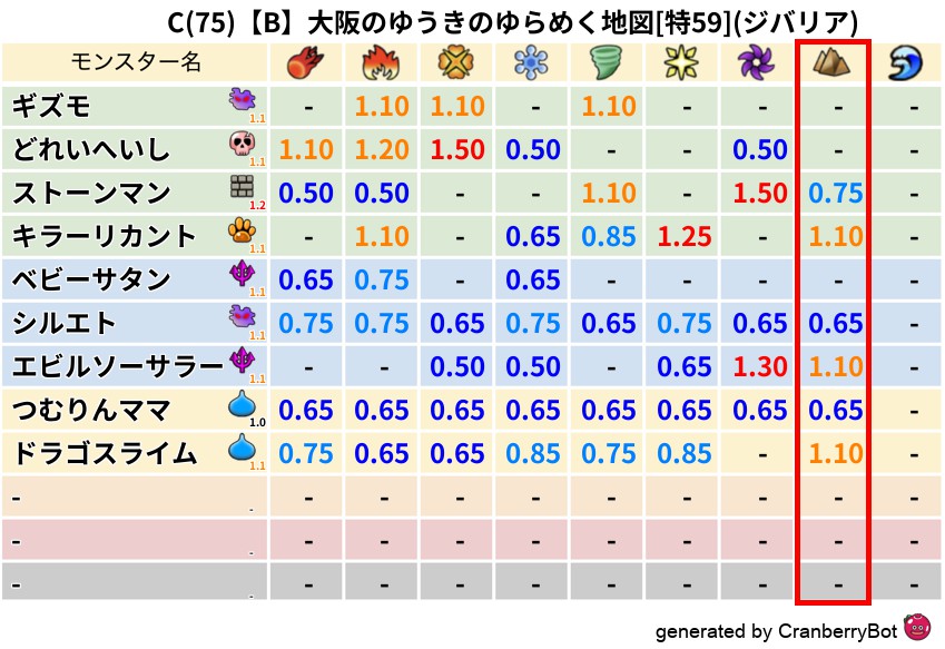 C(75)【B】大阪のゆうきのゆらめく地図[特59](ジバリア) 地図判定結果 2024/09/08 08:262025/11/05 12:45 地図判定結果 つむりんママジバリア (まだ評価がありません)読み込み中... 🤍 登録する コメントを見る(0件)クランベリーボット判定結果の詳細 クランベリースコア75 クランベリー置換率63% 大量発生モンスターつむりんママ 超耐性ジバリア(0%) こころ道 完全一致モンスター ギズモ天地雷鳴士(共通Lv1) どれいへいしドラゴン(人道Lv5) ストーンマンゴッドハンド(守護道Lv5) エビルソーサラーゴッドハンド(守護道Lv10) つむりんママ魔人(超魔道Lv20) ドラゴスライムニンジャ(風道Lv20) この地図を探す・受け取る 「大阪のゆうきのゆらめく地図」をみんドラで探す