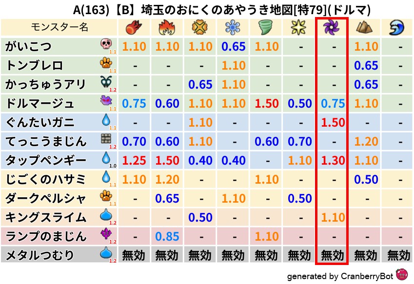 • 最高系統出現率:一番出現率の高いモンスターの系統、こころドロップ率アップの参考に!