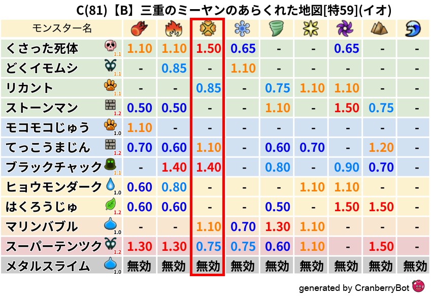 • クランベリー置換率:大量発生モンスター別の順位、最高置換率の地図は人気が高い