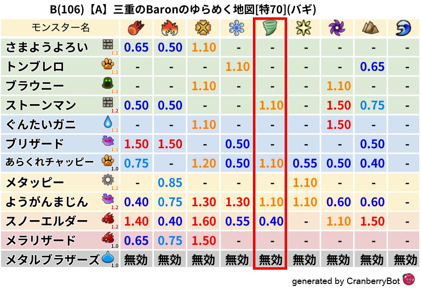 • 最高系統出現率:一番出現率の高いモンスターの系統、こころドロップ率アップの参考に!