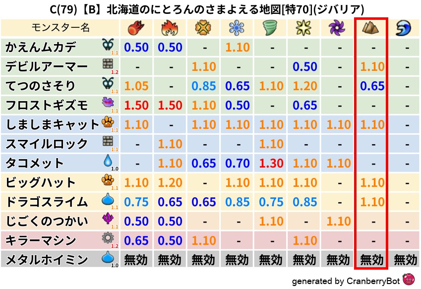 • クランベリー置換率:大量発生モンスター別の順位、最高置換率の地図は人気が高い