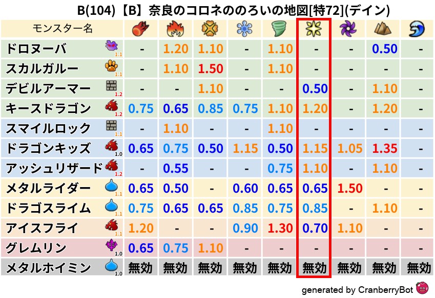 デイン(41%) - 超耐性・弱耐性なし