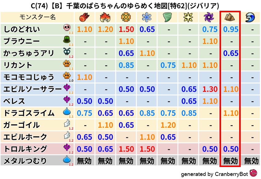• クランベリー置換率:大量発生モンスター別の順位、最高置換率の地図は人気が高い