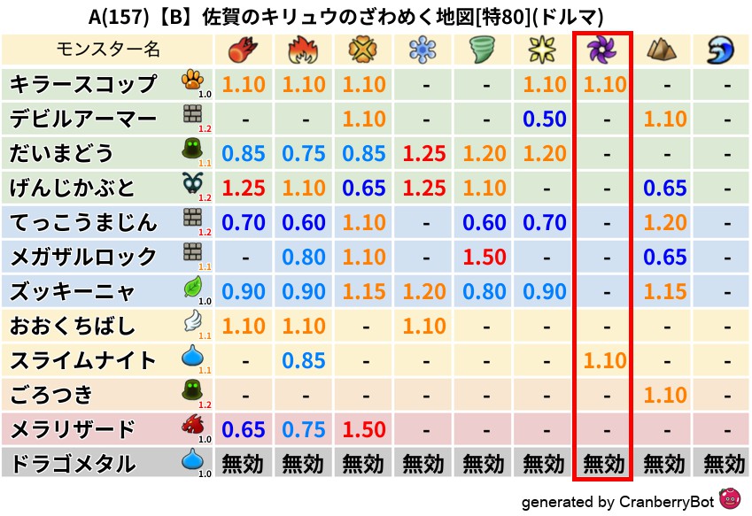 • クランベリー置換率:大量発生モンスター別の順位、最高置換率の地図は人気が高い