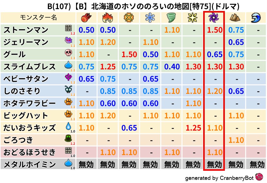 • 最高系統出現率:一番出現率の高いモンスターの系統、こころドロップ率アップの参考に!