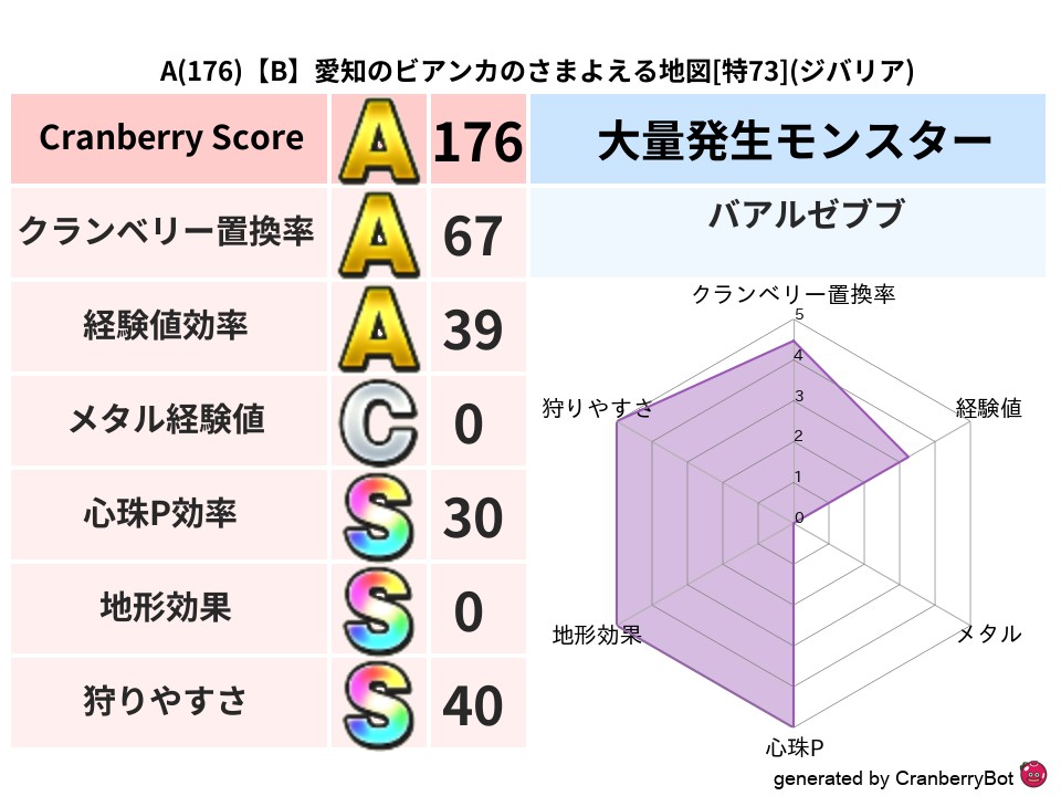 • クランベリースコア:これまで判定した地図での順位、上位100位はかなりレア✨