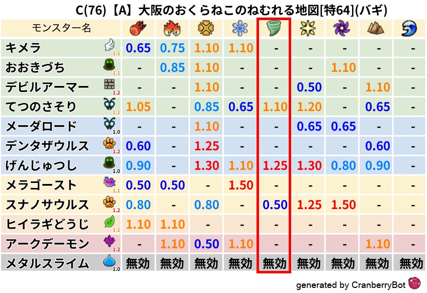• 最高系統出現率:一番出現率の高いモンスターの系統、こころドロップ率アップの参考に!