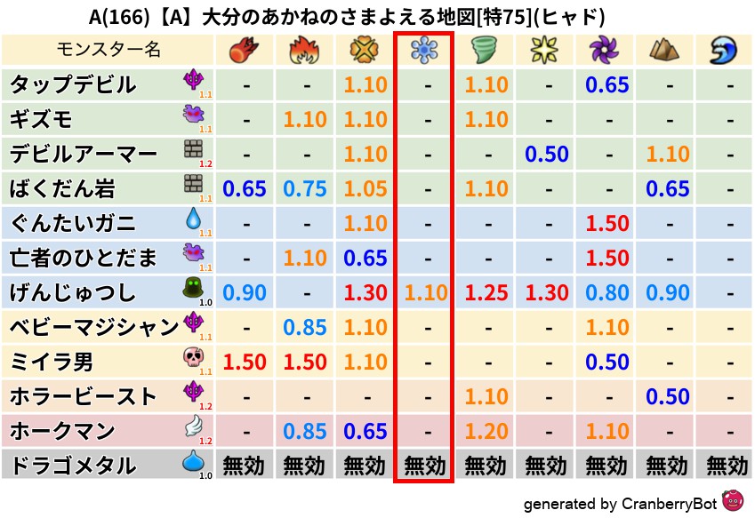 ヒャド(0%) - 超耐性・弱耐性なし