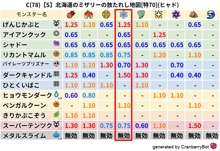 • クランベリー置換率:大量発生モンスター別の順位、最高置換率の地図は人気が高い