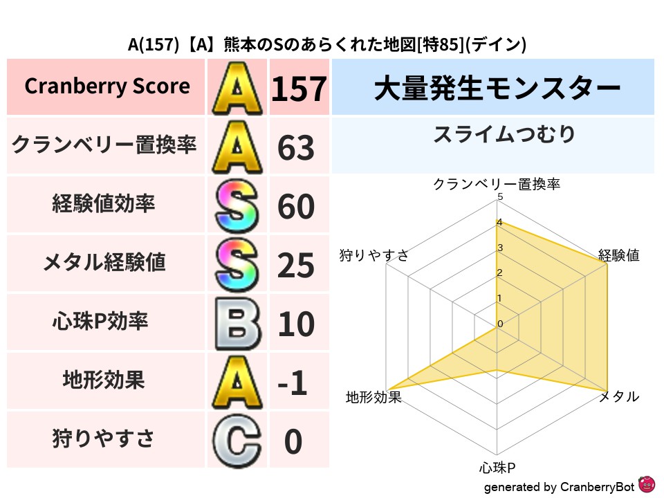 • クランベリースコア:これまで判定した地図での順位、上位100位はかなりレア✨
