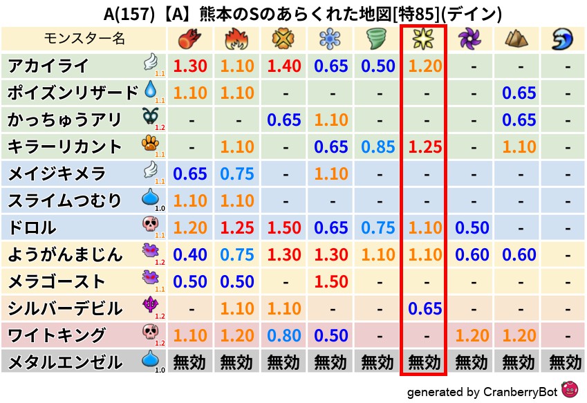 • クランベリー置換率:大量発生モンスター別の順位、最高置換率の地図は人気が高い