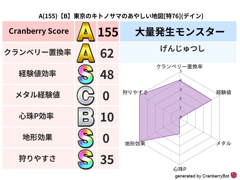 • クランベリースコア:これまで判定した地図での順位、上位100位はかなりレア✨