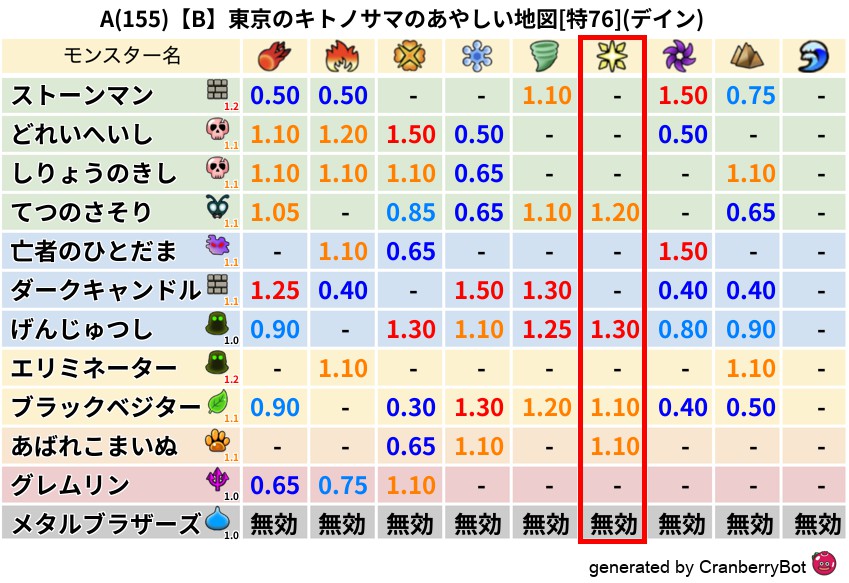 • 最高系統出現率:一番出現率の高いモンスターの系統、こころドロップ率アップの参考に!