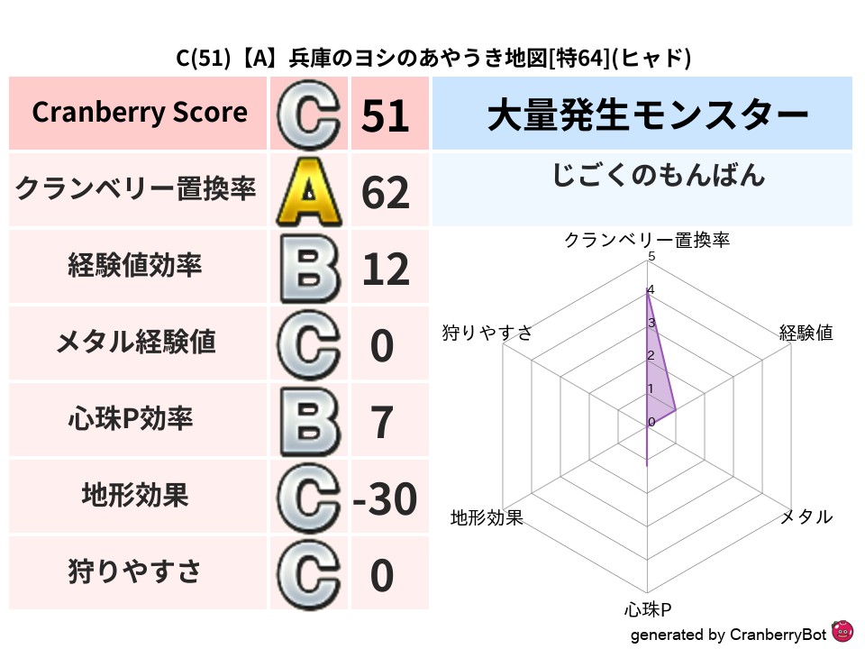 • クランベリー置換率:大量発生モンスター別の順位、最高置換率の地図は人気が高い