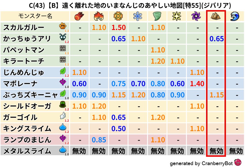 • 最高系統出現率:一番出現率の高いモンスターの系統、こころドロップ率アップの参考に!