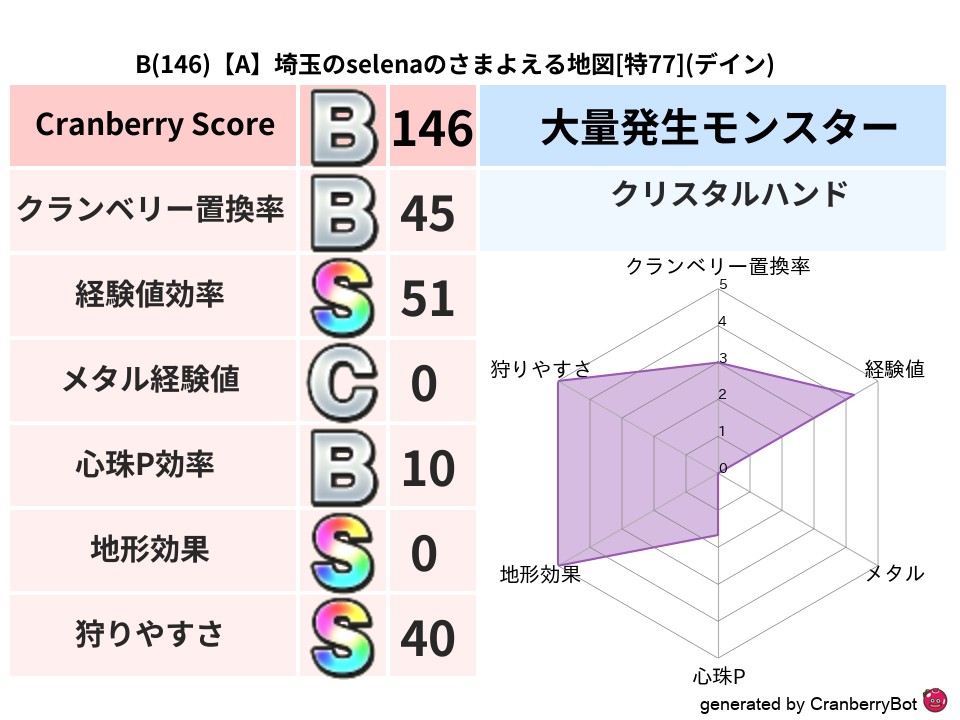 • クランベリースコア:これまで判定した地図での順位、上位100位はかなりレア✨