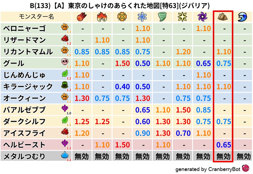 ジバリア(0%) - 超耐性・弱耐性なし