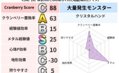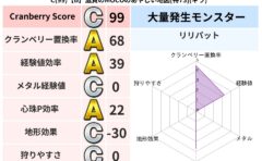 • クランベリー置換率:大量発生モンスター別の順位、最高置換率の地図は人気が高い