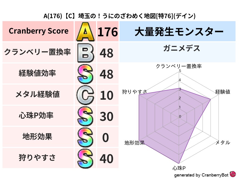 • クランベリースコア:これまで判定した地図での順位、上位100位はかなりレア✨