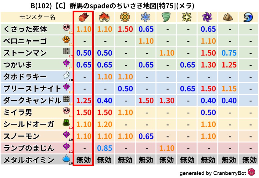 メラ(69%) - 超耐性・弱耐性なし