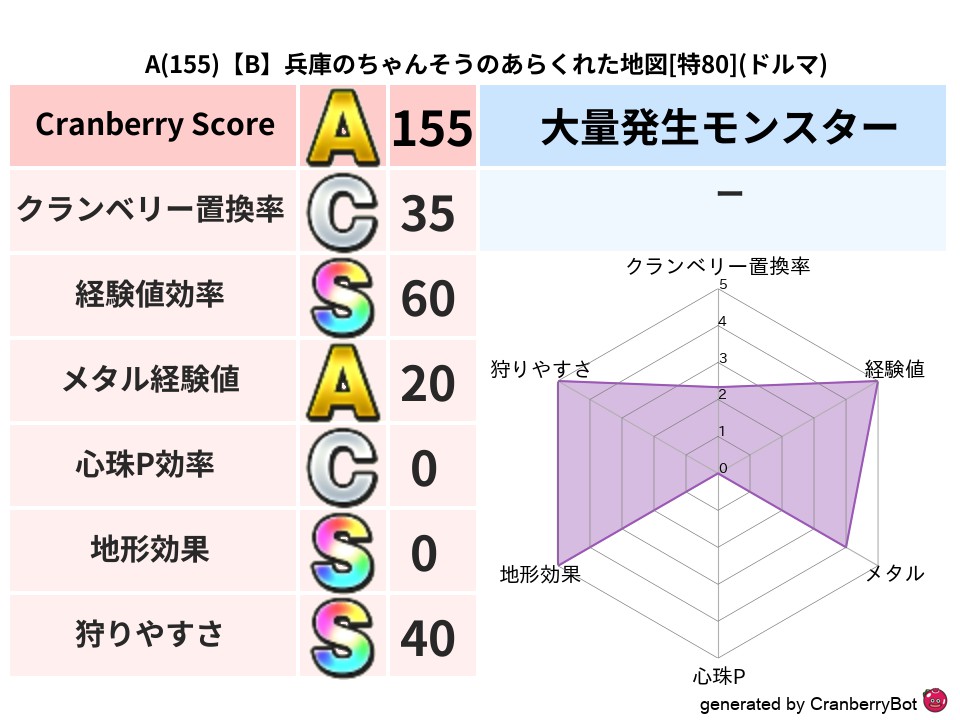 • クランベリースコア:これまで判定した地図での順位、上位100位はかなりレア✨
