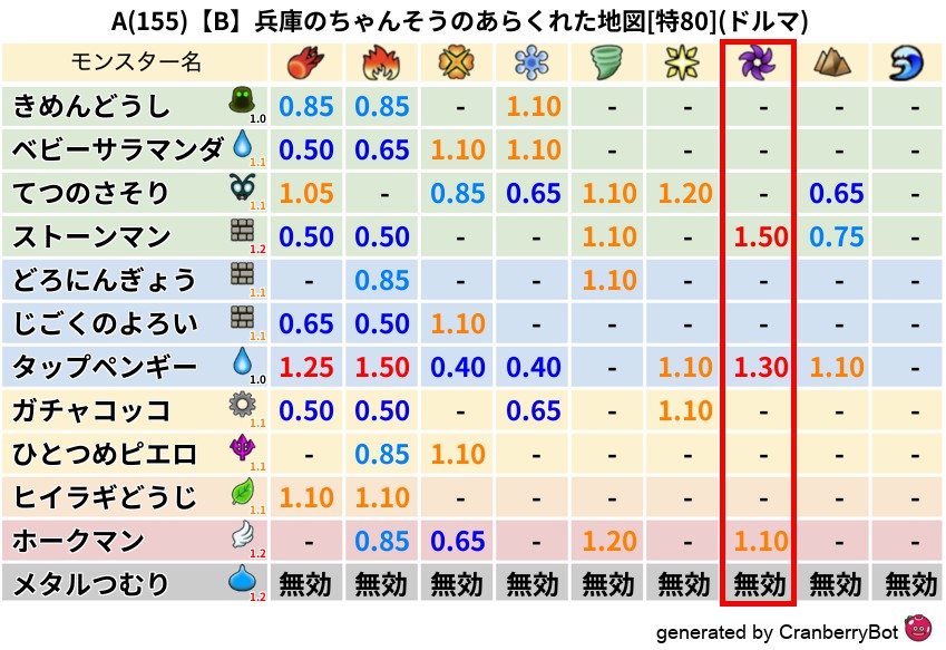 • 最高系統出現率:一番出現率の高いモンスターの系統、こころドロップ率アップの参考に!