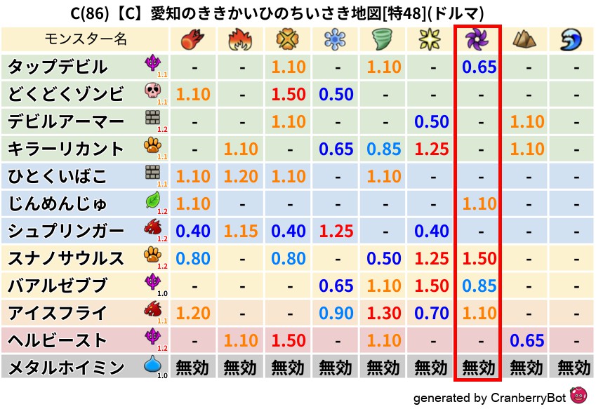 ドルマ(46%) - 超耐性・弱耐性なし