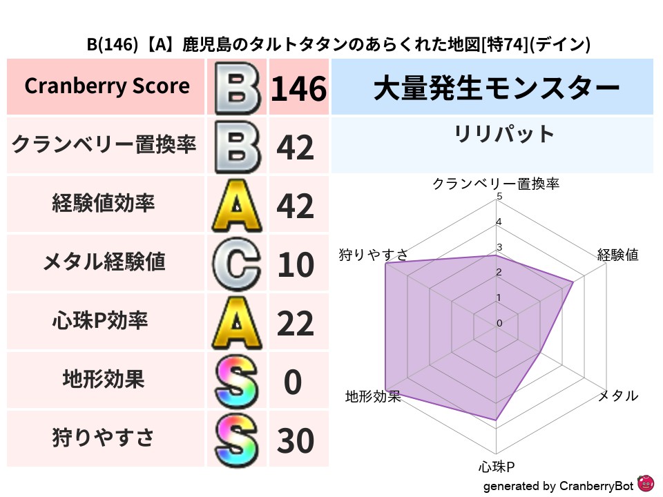 • クランベリースコア:これまで判定した地図での順位、上位100位はかなりレア✨