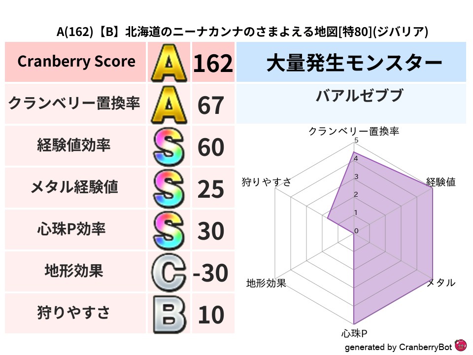 • クランベリー置換率:大量発生モンスター別の順位、最高置換率の地図は人気が高い